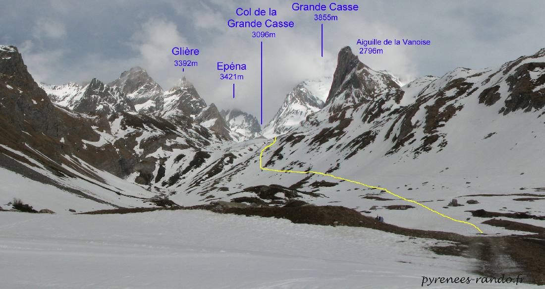Le parcours menant au refuge suit le vallon en contournant l'aiguille de la Vanoise.