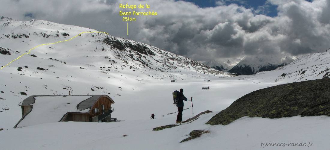 pour l'été et sur l'épaule en face, le refuge de la Dent Parrachée 2516m.