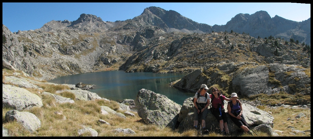 Prêtes pour le plouf !! Lac inférieur de Brazato, pic occidental, et oriental de Brazato, Tartalo (au centre), et Piniecho