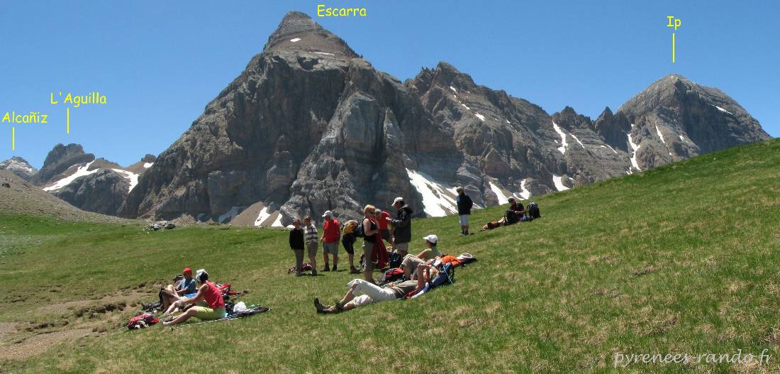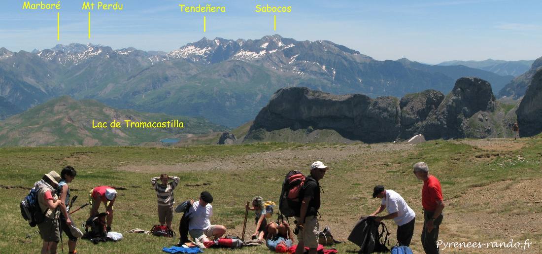 Col d'Escarra, au sud, S-E le cirque de Gavarnie (Marboré, Mt Perdu) et la sierra Tendenera.