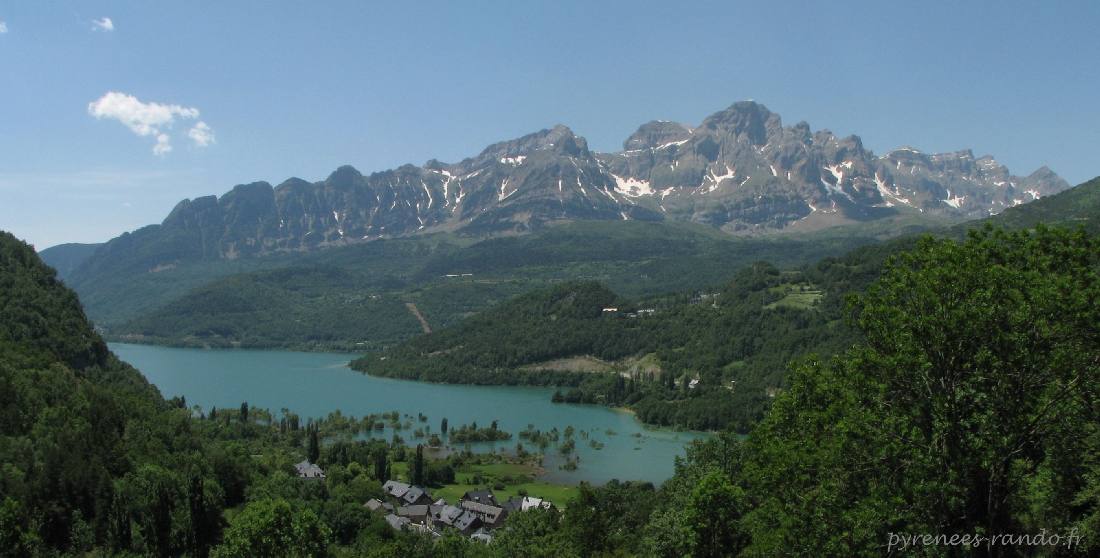 Pose VTT sur la route reliant Panticosa à Hoz de Jaca, le lac de Bubal sous l'égide de la Peña Telera..