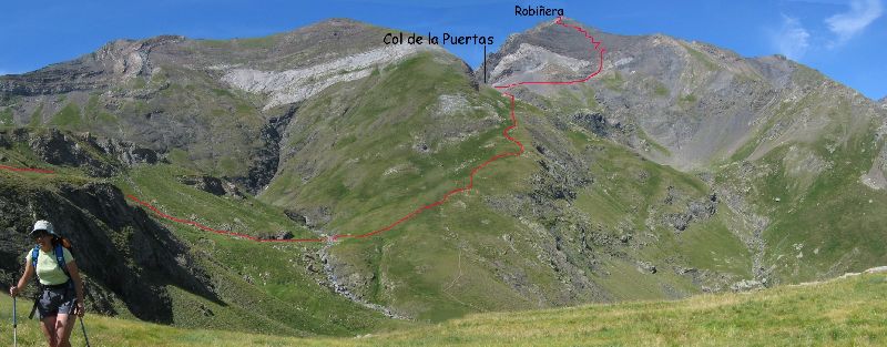 Derrière la voie de descente par la face sud du pic de Robiñera pour rejoindre le col de la Puertas.
