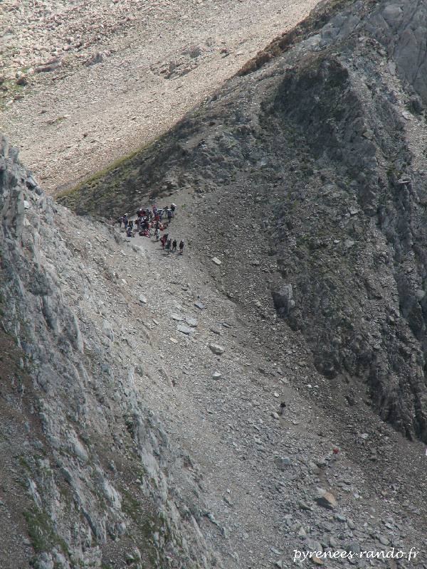 Col de Eristé ou de Grist 2964m. Le groupe plonge vers le val de la Ribereta menant au refuge de Biados