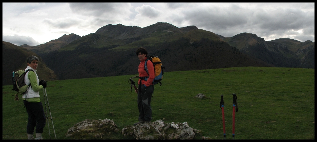 Arrivée à 999m, pour la pose de midi, dominée par le Kartxila en fond.