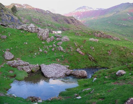 Résurgence, non loin de la cabane, qui alimente le plateau d'Aïgues Tortes