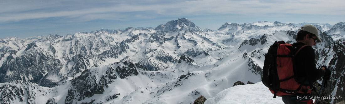 Steph au sommet du Grand Barbat 2813m avec pour n'en citer que quelques uns : Cambales, Balaïtous, Palas. ...