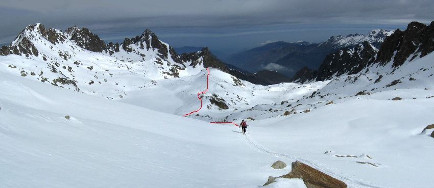 A l'approche du contrefort sommital, nous dominons le lac Grand (à gauche), et les lacs Herrat et Castabat (à droite).