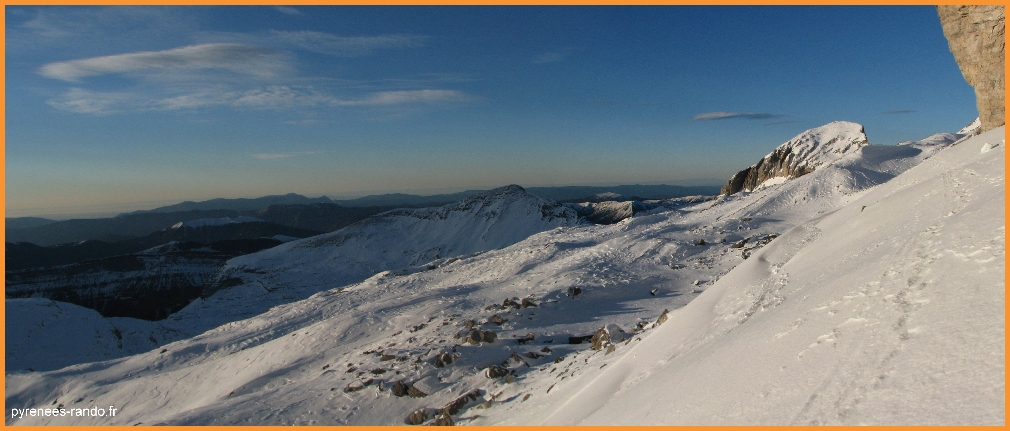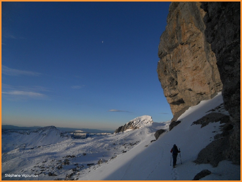 C'est reparti, crampons aux pieds, la neige porte bien.