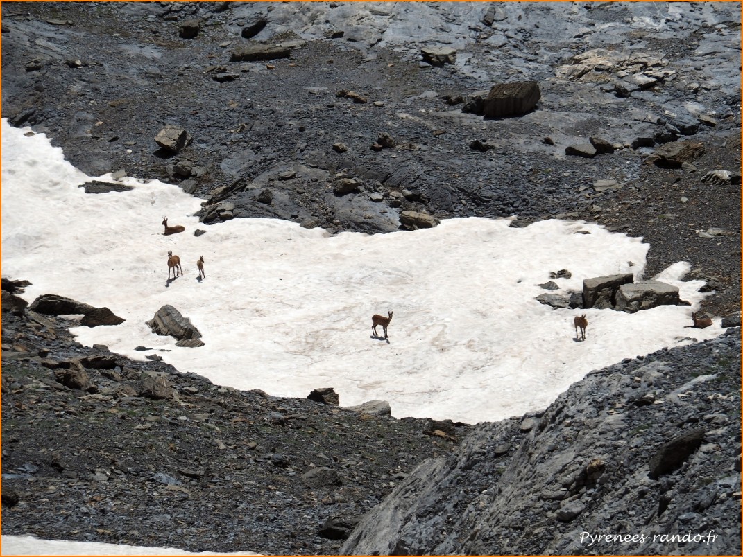 col de la Munia, côté espagne, des isards gambadent sur le névé.