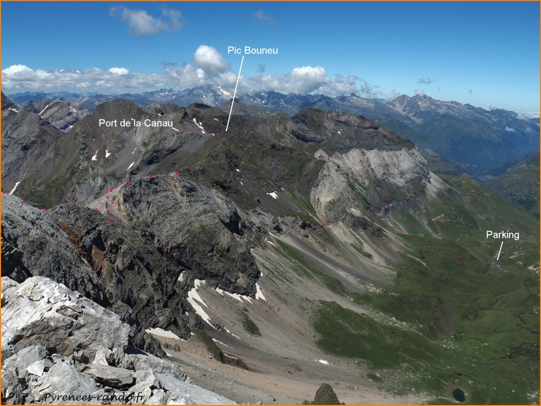 parcours avec les pointillés montrant le couloir de la Canau et le