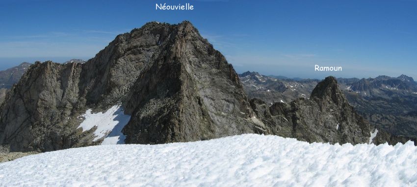 Néouvielle avec l'arête des Trois Conseillers (de face) et Ramoun depuis le Pic des Trois Conseillers 3039m.