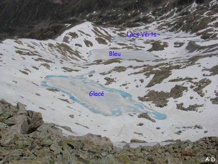5 lacs glacés : vallon de Maniportet (lac Glacé, Lac Bleu, lacs Verts).