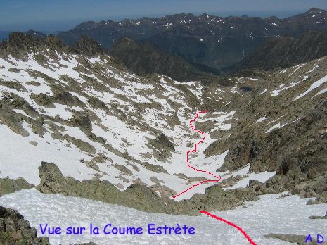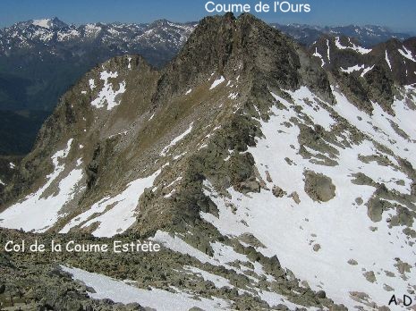 Pic de la Coume de l'Ours, et vue plongeante sur la coume Estrète (descente)