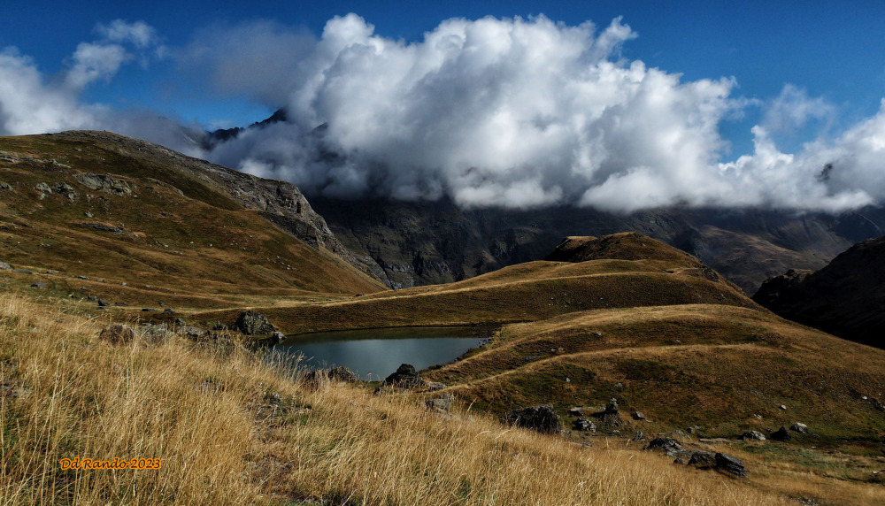 Depuis le pic de la Bernatoire 2516m, le lac de la Bernatoire 2275m dominé par le pic de Gabiet 2716m.