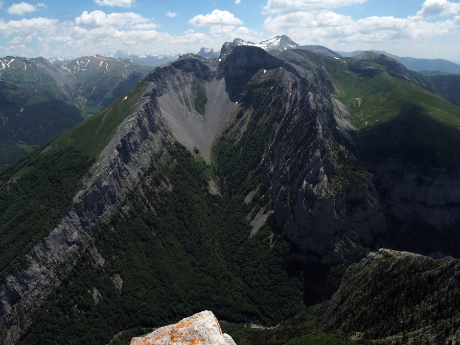 Borne du sommet avec le Castillo de Acher, et l'Achar de Forca.