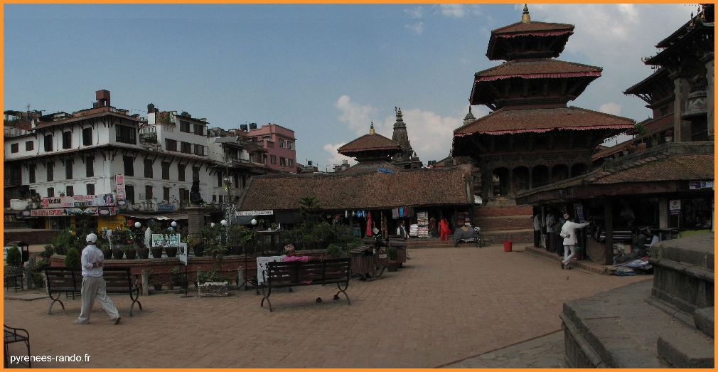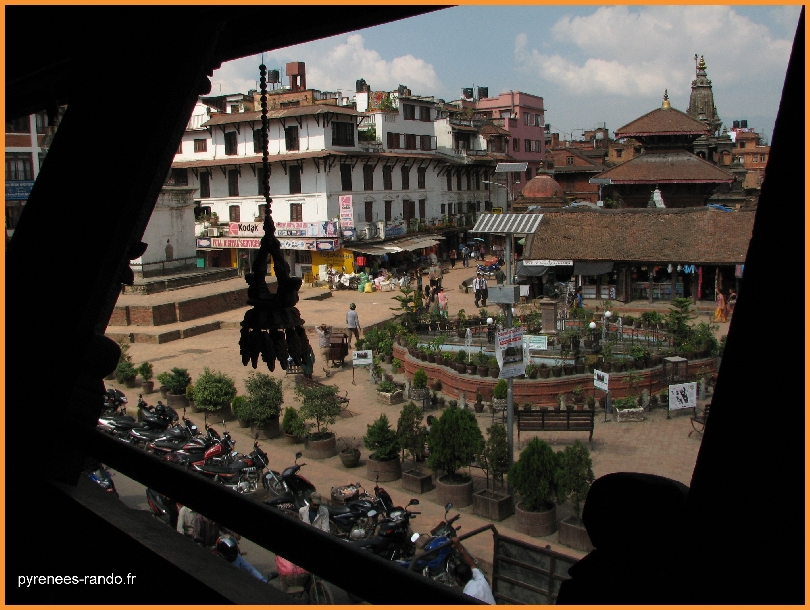 Depuis le restaurant, qui est situé au dessus de ces échoppes (photo ci-dessus), avec vue sur la place principale de Patan.