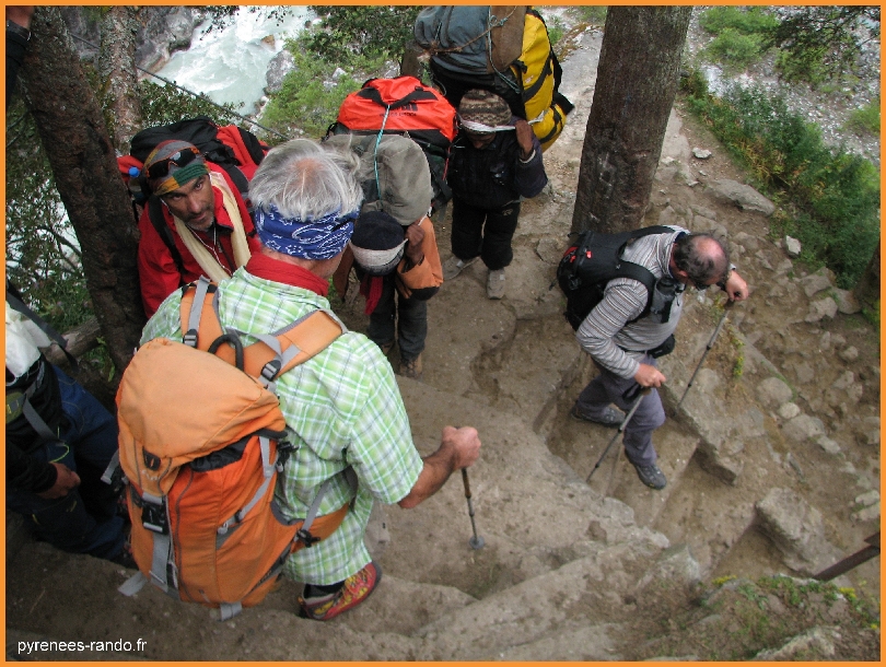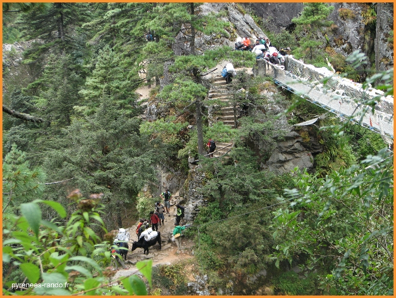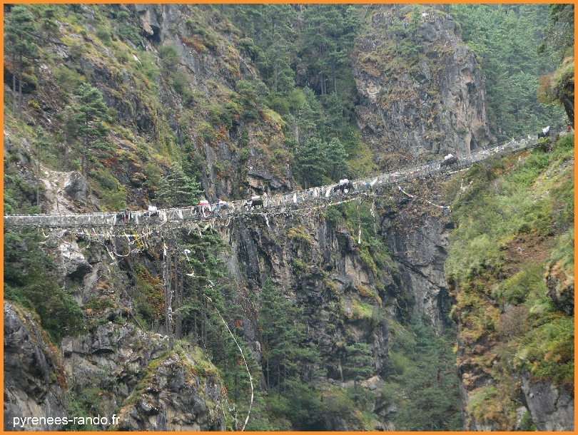 ciel et terre à plus de 90m au-dessus du vide. Nous sommes protégés par les drapeaux de prières qui