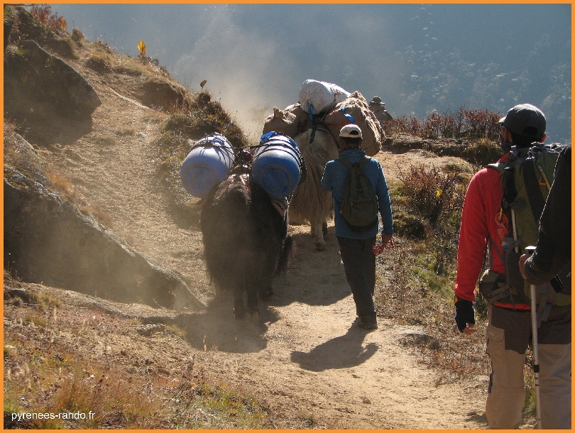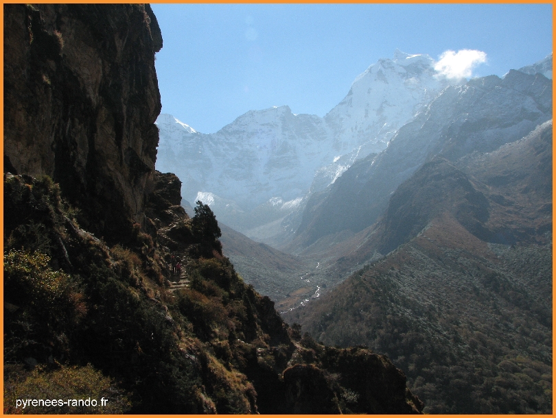 un bon bout de chemin, le monastère de Tengboché à droite de la photo.
