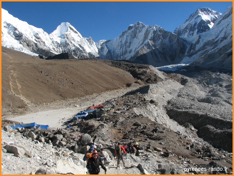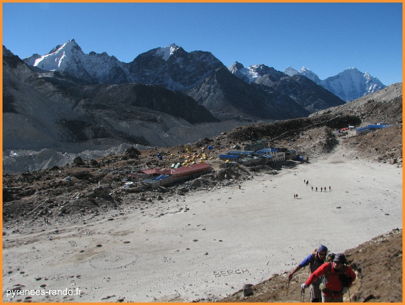 Gorak Shep, le dernier petit village de la vallée, à gauche le chemin