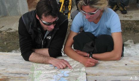 Steph et Laurence à la recherche de l'itinéraire du lendemain avant de goutter la bière italienne