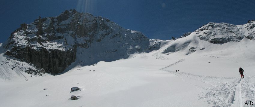 Glacier du Gran Neyron dominé par la pte de l'Herbetet 3778m Cliquez sur la photo pour afficher la légende.