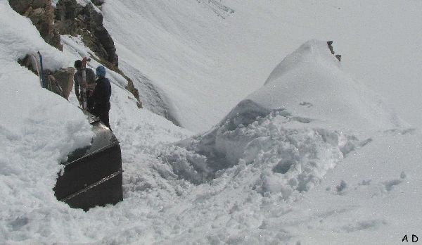 l'abri bivouac Sberna 3484m enfoui sous la neige (6 places avec couvertures)