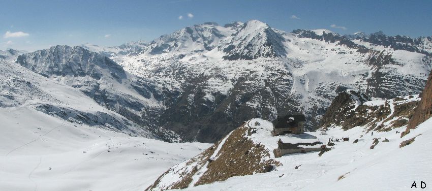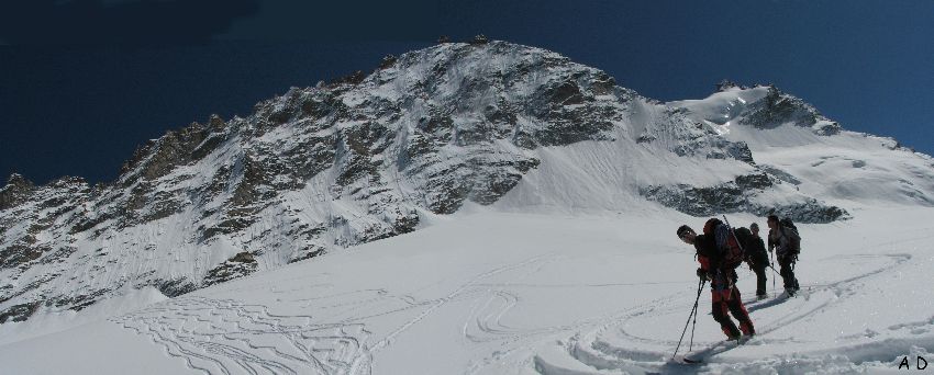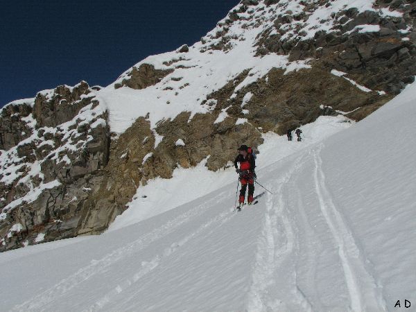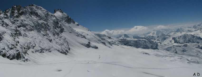 Au dessus de nous, le Becca de Montandayné 3841m, et le petit Paradis 3921m