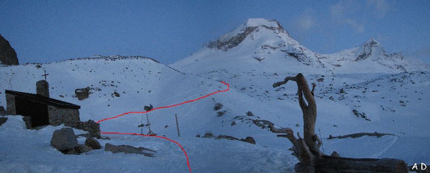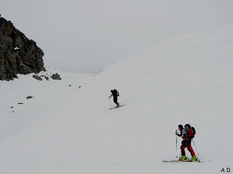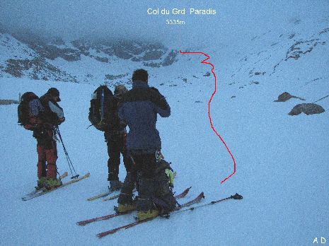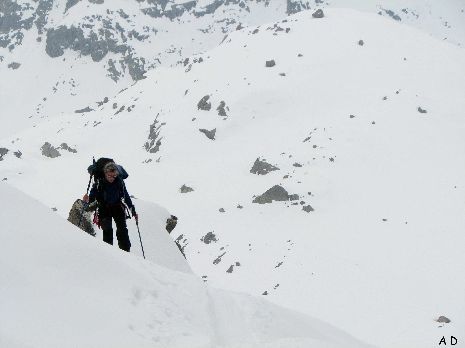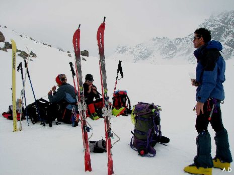 La météo s'est détériorée, il neige, l'objectif de la matinée : le col du Grand Paradis 3335m.