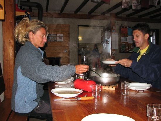 18h30 repas. Après 12h de route nous ne tergiverserons pas, à 21h extinction des feux. Demain départ 7h pour le pic de Chamoissière 3288m.
