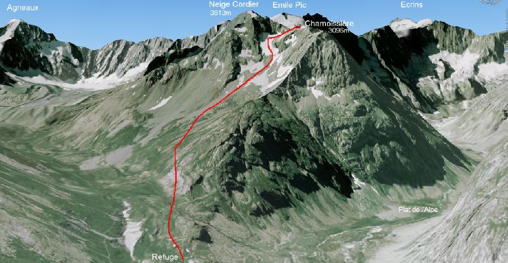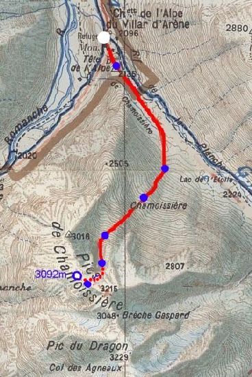 Départ du refuge de Villar d'Arêne 2079m, direction Sud-Est Tête de