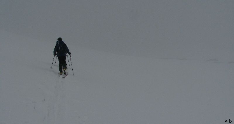 Pendant près d'une heure et demi, le cheminement n'est pas évident dans un brouillard à couper au couteau et ...