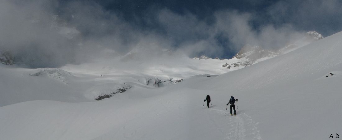 ... récompense suprême pour un montagnard, l'horizon s'ouvre, quelques silhouettes de sommets apparaissent.