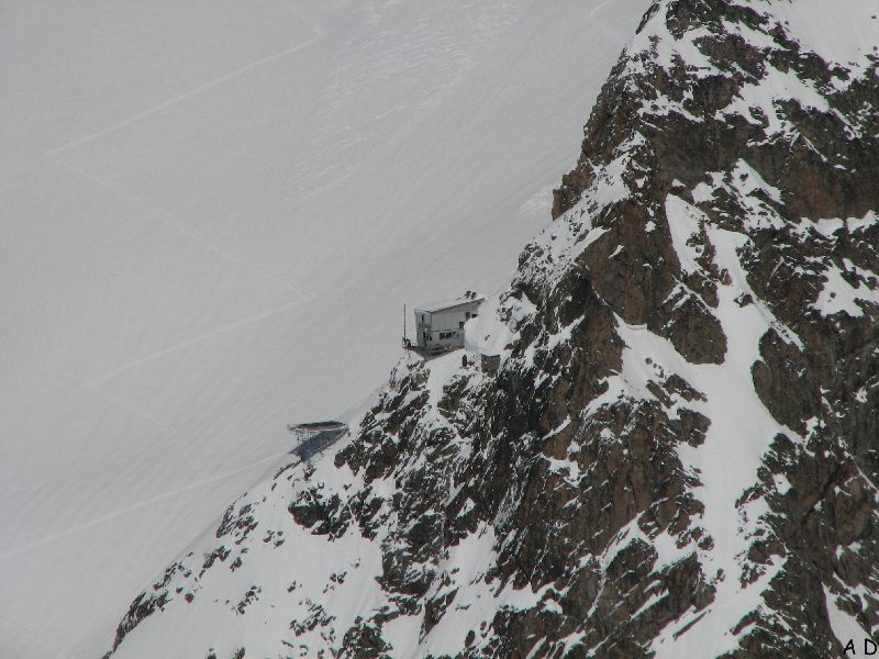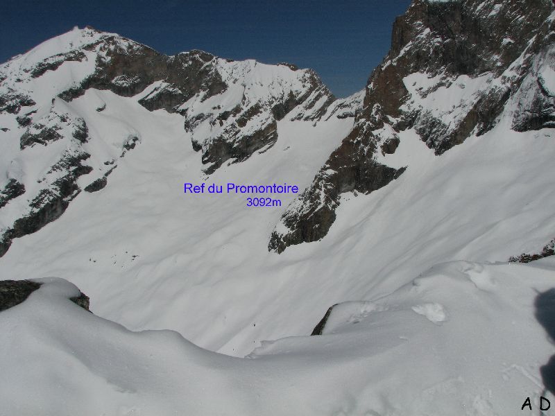 Le trio de Choc avec la Pointe des Chamois 3317m. Clic sur la photo du Promontoire, Zoom sur le refuge
