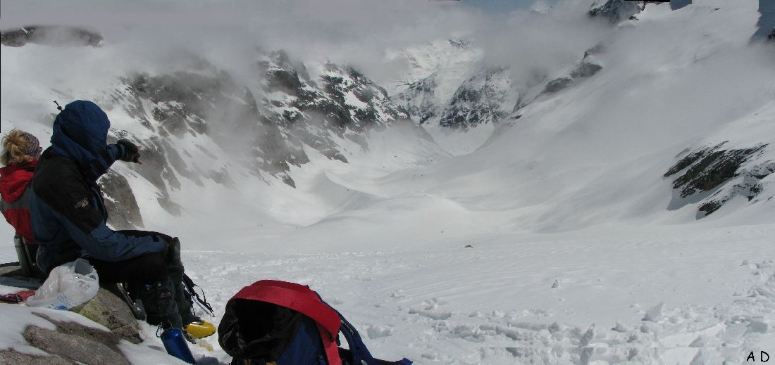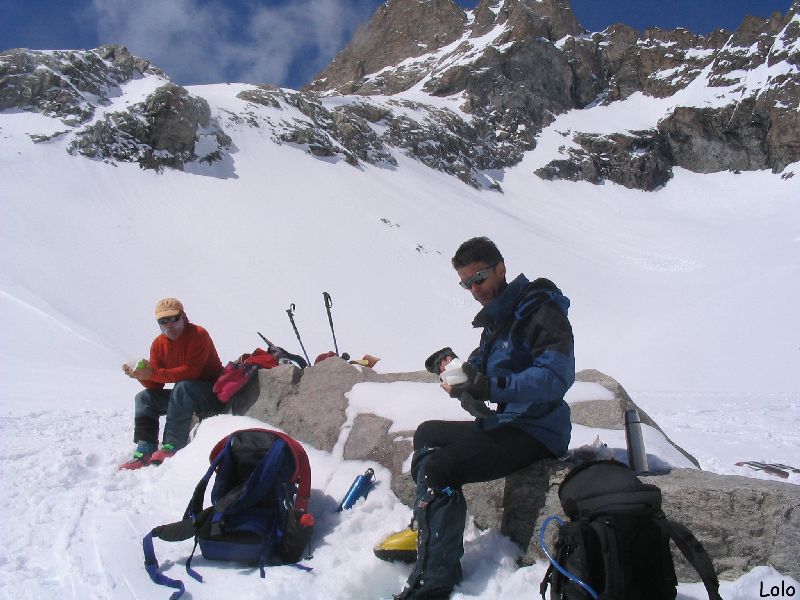 Pause casse croûte à la côte 2889m ! Au fond le plan de Valfourche 2053m, 800m plus bas.