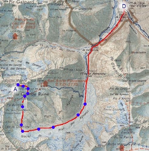 Ruine, La Meije, pic Gaspard, le refuge A Planchard, ...