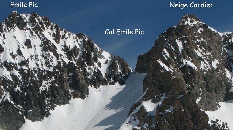 Pic Emile Pic et Neige Cordier avec le couloir permettant de rejoindre