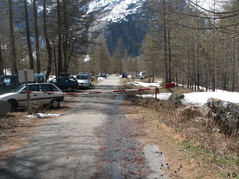 11h45, après 20mn de portage, nous atteignons le parking d'Ailefroide 1500m.