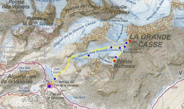 couloirs la Grande Casse, il ne sert à rien de partir tôt car avec