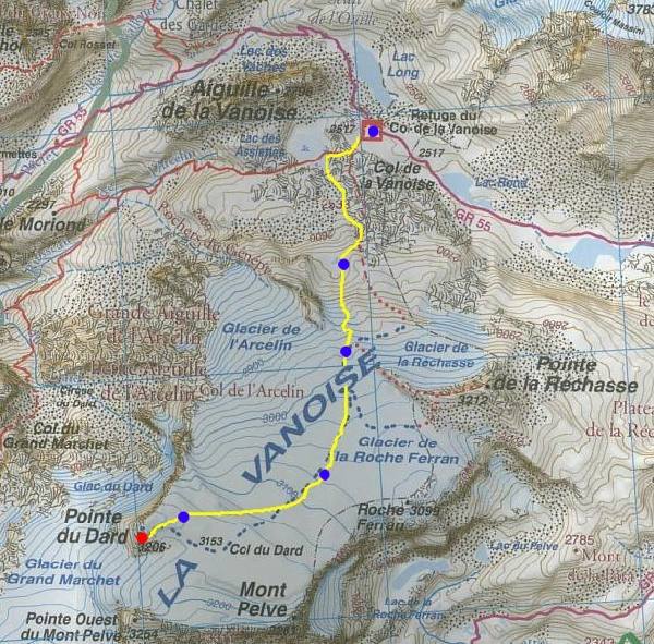 direction S SO pour atteindre la pointe du Dard. Le parcours