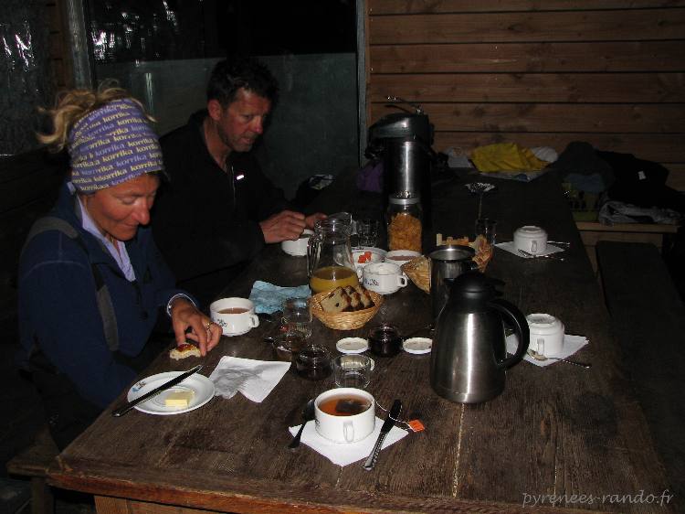 Petit déjeuner copieux avant de charger le sac pour le dernier jour.