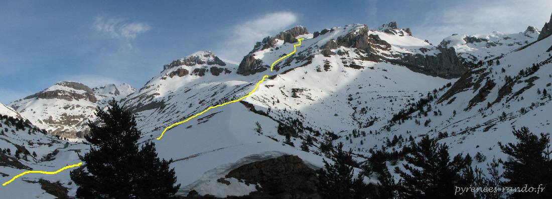 Aux abords de la cabane de Saleras, on aperçoit le premier tiers de l'itinéraire.