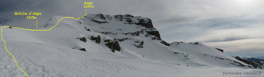 Brèche d'Aspe 2425m et le sommet d'Aspe 2645m.