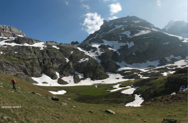 Ibon de Izagra avant le col dominé par le Llena del Bozo.