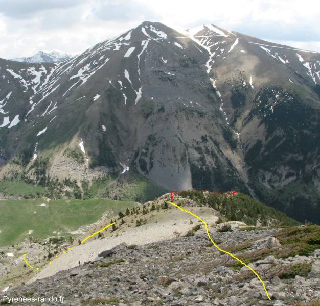 Nous avons pris l'itinéraire jaune, mais je pense que l'itinéraire rouge passe en suivant la crête. A tester.