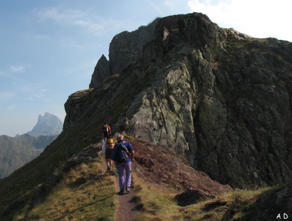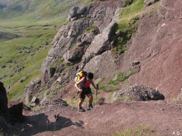 L'arrivée au col 2404m, à partir d'ici la roche rouge dominera jusqu'à l'Arroyeras. |