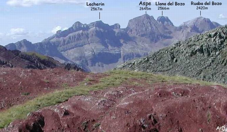 Zoom sur les pics Lecherin, Aspe, Llana del Bozo, Ruba del Bozo (Cliquez sur la photo pour retirer la légende) |
