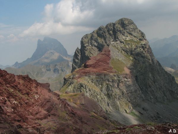 Parcours sur la crête avec le pic du Midi d'Ossau et le Pic d'Anayet omniprésents... et le Vertice derrière Baptiste. |