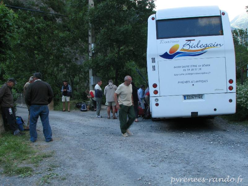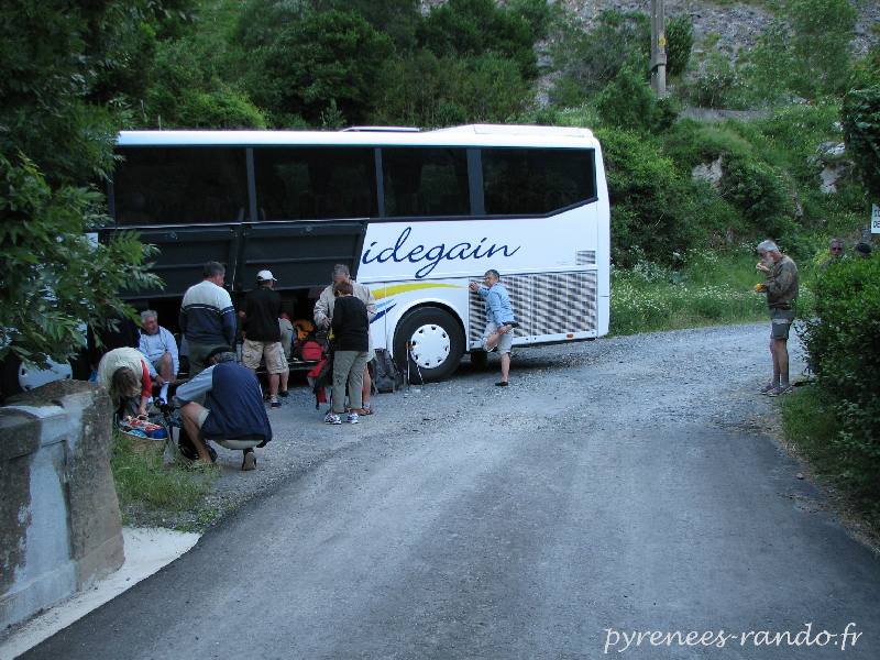Le bus nous récupère au pont au dessus de Canfran Estaciόn. Fin d'une belle journée.