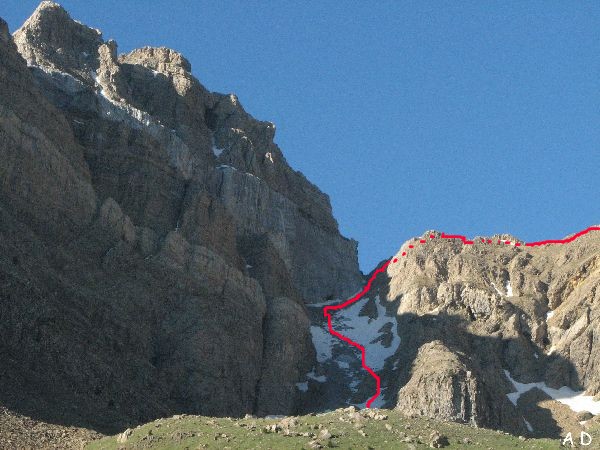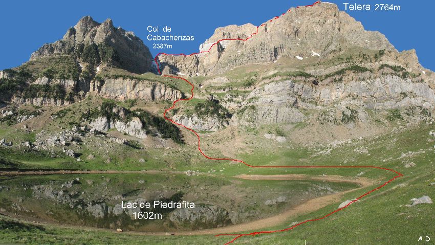 Lac de Piedrafita, col de Cachivirizas et la Telera avec sa corniche de neige. (Cliquez sur la photo pour retirer la légende)