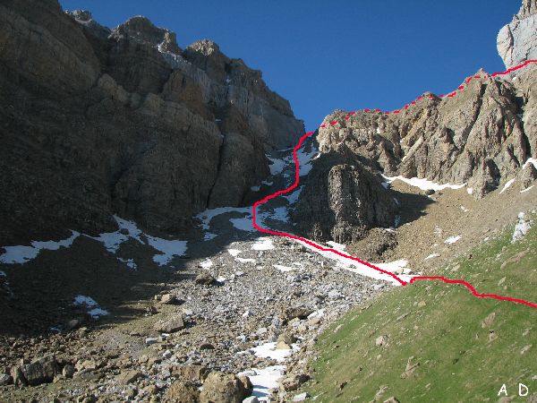 Arrivé au pied du couloir, le col de de Cachivirizas 500m plus haut.